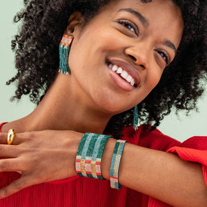 Introducing the Alex Horizontal Colorblock Beaded Stretch Bracelet from the Luxe Collection. This stretch bracelet features precision-cut luxe beads in shades of green, shades of pink, and gold, creating an alluring and dazzling color palette. The horizontal colorblock design adds a trendy and preppy touch to your wrist, making it a perfect accessory for any occasion. Elevate your style with the captivating and trend-forward Alex Horizontal Colorblock Beaded Stretch Bracelet.