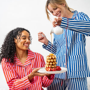 Introducing BONNIE (Bonne-nuit)! Made from 100% super-soft cotton, these pajamas are as cute as they are cozy. Each set features stylish piping in an accent color for a touch of whimsy and comes beautifully packaged in an envelope, making them perfect for display + gifting