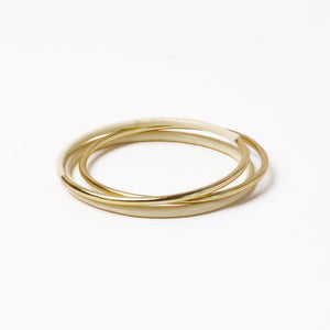 • A timeless trio of bangles with glossy ivory enamel and brass