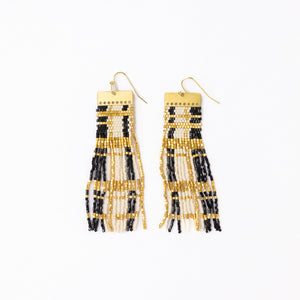 • Hand-beaded plaid fringe with gold accents