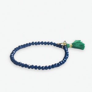 Patsy Solid Crystal Stretch Bracelet With Tassel Navy Wholesale