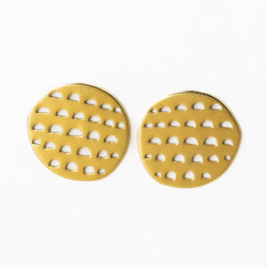 Aretha Circle With Cut Outs Post Earrings Brass