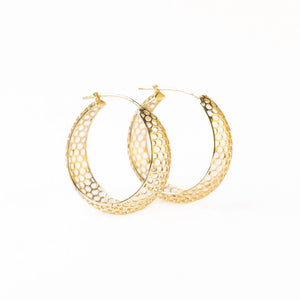 Add some buzz-worthy style to your everyday looks with the Gretchen Honeycomb Hoop Earrings. The compact size makes them perfectly wearable for all occasions. The textured honeycomb pattern adds visual interest and an artisanal handcrafted touch. Dress them up with a swingy dress or keep it casual with jeans and a tee.