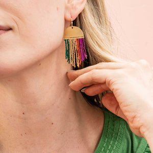 Embrace a playful and vibrant style with the Luxe Brass Claudia Multi-Striped Short Beaded Fringe Earrings. These brass earrings feature precision-cut luxe beads in muted shades, creating a delightful multi-striped design. The short fringe adds a touch of movement and playfulness to the earrings. With a length of 2" and a width of 1", these hanger earrings are a perfect accessory to infuse your look with color and charm.