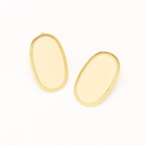 • Timeless oval silhouette finished in glossy ivory enamel with brass framing