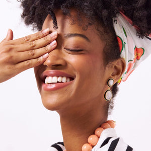 • Sleek black enamel drops paired with luminous rainbow moonstone accents
