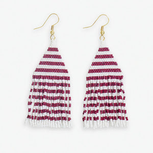 Bring bold team spirit and bohemian flair to your game day look with the Lexie Horizontal Stripes Beaded Fringe Earrings. These statement earrings feature rows of dark red and crisp white seed beads in an eye-catching striped pattern. Layers of beaded fringe dangle below, swaying gracefully with every movement as you cheer on your team to victory.