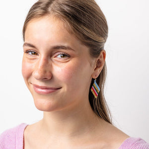 Get ready to make a bold statement with our striking Zelda Diagonal Stripes Beaded Diamond Drop Earrings in Pink and Olive! These eye-catching earrings are the perfect way to add a touch of graphic glamour to any outfit. Picture this: a pair of sleek, diamond-shaped drops, each one featuring a mesmerizing pattern of diagonal stripes. The intricate beadwork creates a stunning visual effect, with the contrasting colors playing off each other in a way that's sure to turn heads.