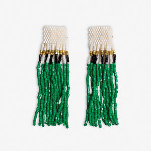 Hello, Kelly Green! The Marilyn Colorblock With Center Vertical Black Stripes Fringe Earrings are the perfect blend of boho and preppy. The colorblock design adds a modern touch and the vertical stripes bring a hint of playfulness to the design.