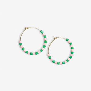 Elevate your style with our Victoria Mixed Beaded Hoop Earrings from the petite collection, now inspired by the allure of St. Tropez! Featuring Kelly Green and Pink, these petite hoops are ideal for stacking, creating a chic and vibrant look.