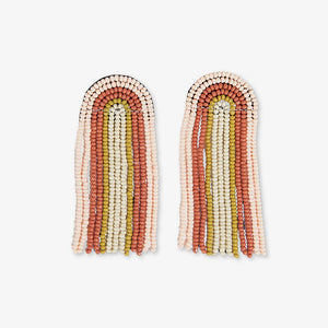 With rainbow-shaped earrings + a positive attitude, there's nothing you can't do. Our signature glass seed beads are making the world a more boho-cool place one ear at a time. Blush pink, rust, citron + ivory beads bring colorful movement and eccentric greatness. So whether you're pairing them with a cocktail dress or denim jumpsuit, you're sure to make a bold statement.