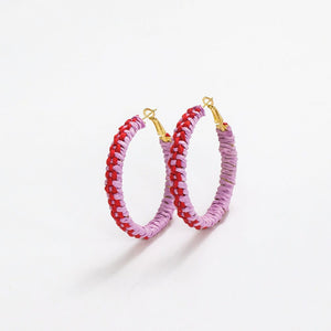 Capture the essence of tropical sunsets with our Holly Two-Color Woven Raffia Hoops in Light Lavender and Poppy. The combination of colors and woven raffia texture adds a touch of warmth and elegance to your style. Holly is an ideal choice for those who appreciate the beauty of tropical evenings.
