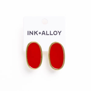 • Oval posts finished in glossy red enamel with brass framing