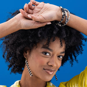 Love a bold sequin design? The Grace Cream Stripes on Black Sequin Stretch Bracelet might be *the one* for you. With cream sequins and black stripes, this handmade stacking bracelet offers a neutral yet bold look that suits both everyday wear and special occasions. Part of our signature Kaleidescope collection, this beauty pairs perfectly with statement seed bead earrings.