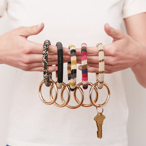 Our cult-classic key rings have become a staple for their effortlessly cool style + functionality. The days of frantically searching for your keys in a bottomless bag are over! Throw this oversized bangle on your arm and easily juggle iced coffee, your kicking toddler, a dog leash, or groceries with the peace of mind that your keys are nearby.