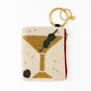 • Hand-beaded with a chic martini front + olive on the back