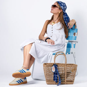 • Tie at the neck, wrap on a bag handle, or wear in your hair