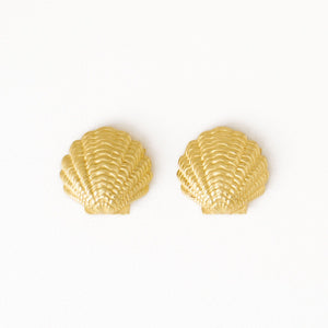 • Shell silhouette posts • Polished brass with warm shine • Perfect for everyday or low-key events