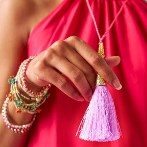 Roxanne Braided Necklace With Tassel Red + Pink Wholesale