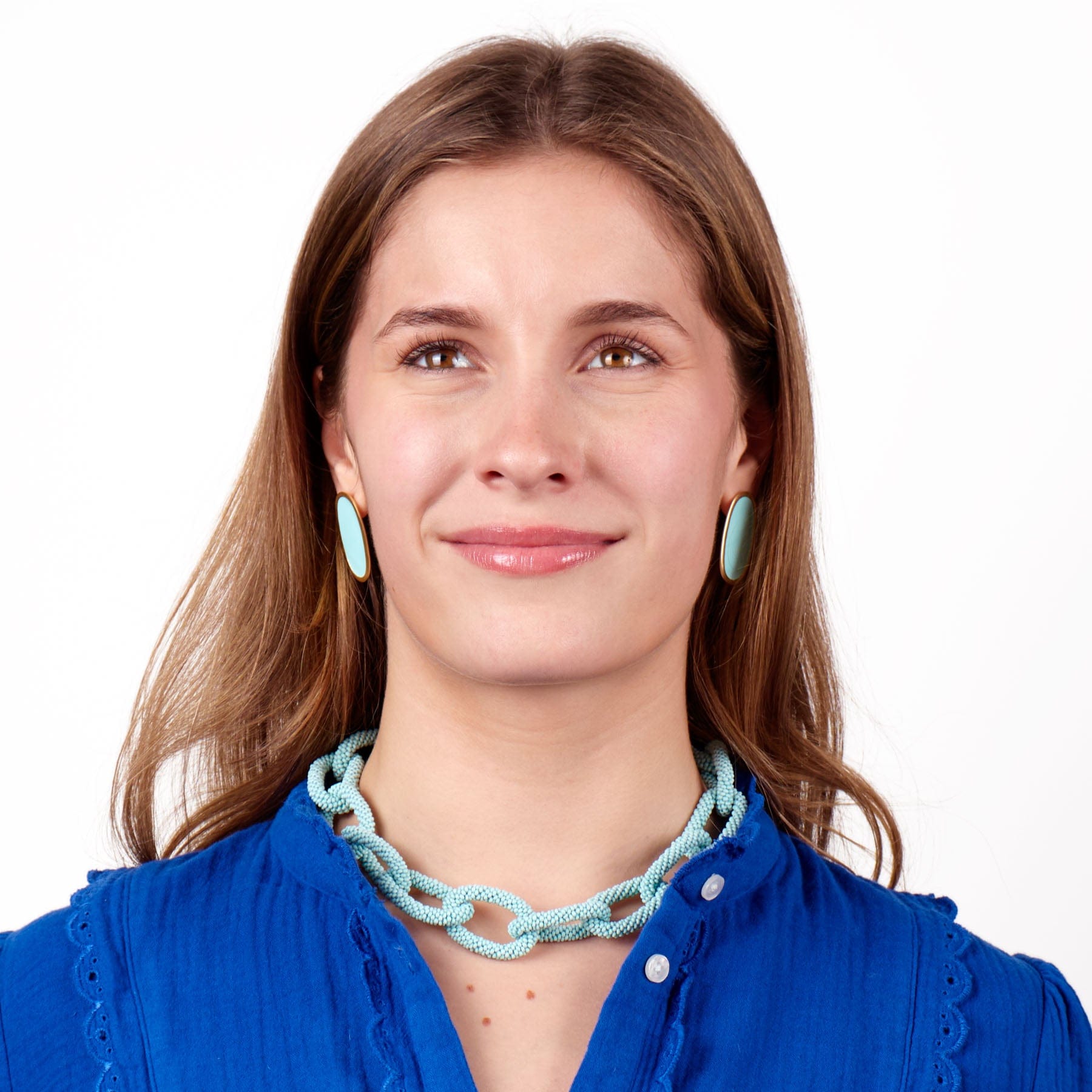 • Beaded chain-link necklace with a modern, structured feel