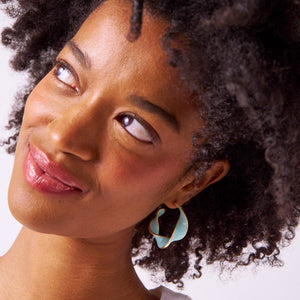 • Twisted hoop silhouette with a glossy aqua enamel finish