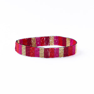 • Striped glass beads in a slim silhouette