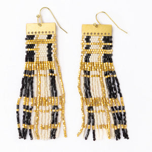 • Hand-beaded plaid fringe with gold accents