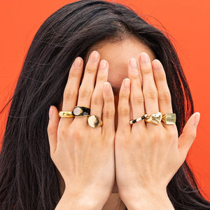 Get ready to wear your heart on your finger with the Poppy Brass Heart Statement Ring in 18k Gold! This playful and eye-catching ring is the perfect way to express your love for all things fun and fashionable. The star of this ring is the bold, brass heart that takes center stage. Plated in luxurious 18k gold, the heart gleams and shines, catching the light with every move of your hand. The generous size of the heart ensures that your statement of love will be loud and clear!