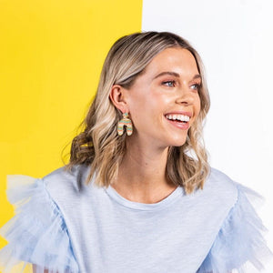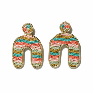 Just the post earrings you're looking for, our precision-cut glass beads in a rainbow frame create just right the modern boho style. Add a pop of positivity to any outfit with these coral, mint, citron, blush + teal striped statement earrings. Wear them to brighten up your Zoom meeting look or hit the town for a weekend brunch with friends knowing that your accessories of choice are there to take your aesthetic to the next level.