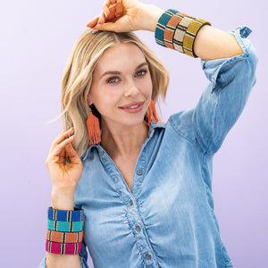 What better way to spice up your wardrobe than bold + impactful handmade bracelets? These seed bead bangles are the perfect mix of easy-going + daring statement pieces. Wear them alone for a more subtle approach or stack them up for a look that's uniquely you.