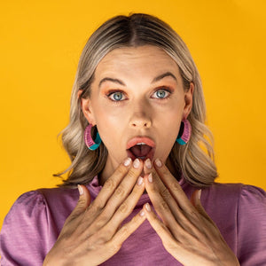 True to its name, these lightweight, earthy raffia earrings feature bold color + natural texture in the world's most iconic shape - the hoop! So whether you're sippin' mojitos on vacation, meeting the girls for a warm afternoon brunch, or adding a pop of personality to your office attire, you're sure to make a statement in these lilac boho accessories.