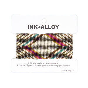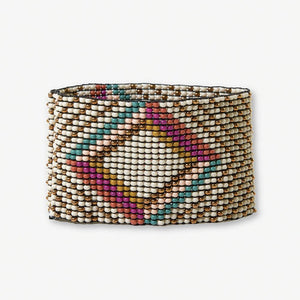 Add a unique accessory to elevate any outfit + bring out the original you! Handcrafted to add a boho + modern flare to your style, this stretchy seed beed ivory and muted color bracelet is the perfect addition to your look.