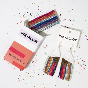Part of our seed bead collection, this striped stretch bracelet is handcrafted by artisans in India. This patterned cuff adds an effortlessly cool pop of color to any modern boho outfit.