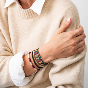 Adorn yourself in opulent color with this Mixed Bracelet Stack. Six luxurious bracelets dazzle in a rich array of jewel tones, from regal amethyst to striking emerald. Shimmering seed beads and smooth rounds are artfully arranged in eye-catching patterns, while glints of gold add a touch of refined glamour. The bracelets' stretchy design ensures a comfortable fit and easy mix-and-match versatility. Whether you're dressing up a casual look or adding extra elegance to evening wear, this bracelet stack lets you effortlessly embody the bold spirit of a treasured gem.