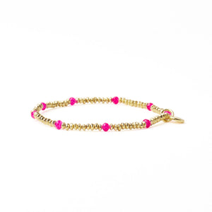 Ashley Small Brass + Crystal Stretch Bracelet Hot Pink + Gold Wholesale