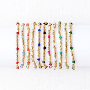 Ashley Small Brass + Crystal Stretch Bracelet Mint + Gold Wholesale