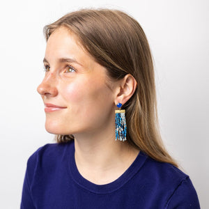 Lilah Semi-Precious Stone Post Beaded Fringe Earrings Blue