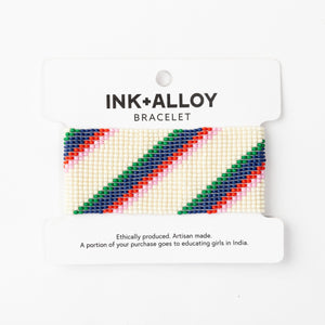 Penelope Stripe Diagonal Seed Bead Bracelet Ivory Navy Green Red