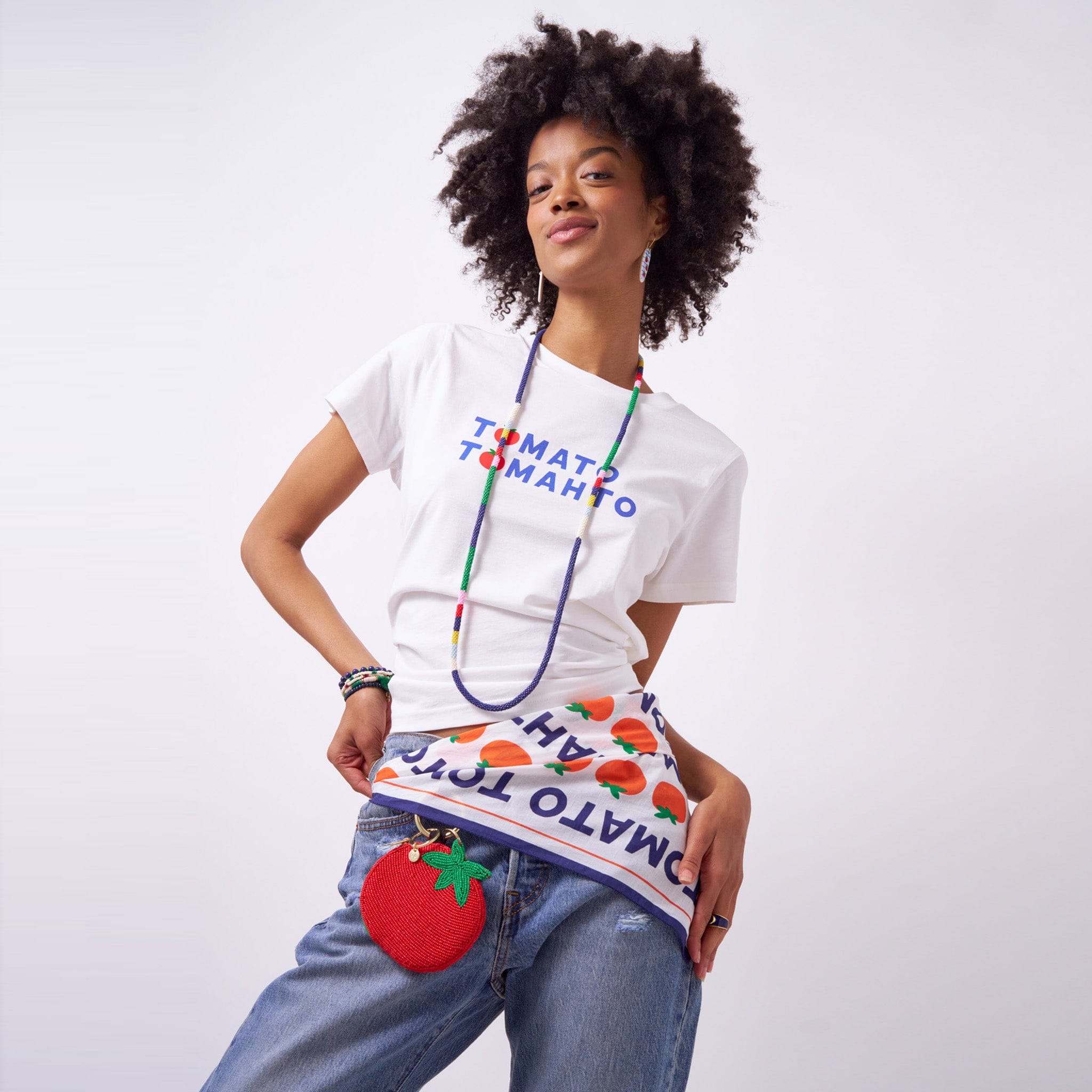 • Whimsical tomato-themed print with a graphic twist