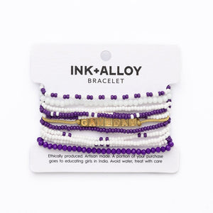 Show your team spirit with our curated Game Day bracelet stack. It features 10 strands of seed bead bracelets and a brass friendship bracelet sporting the word "GAMEDAY".