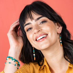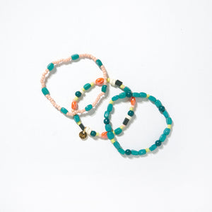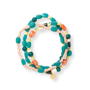 Join in the fun of our Gen-Z-inspired Kaleidoscope collection + let the joy of color take you back to simpler times. With an assortment of colorful shaped beads, making a bold statement has never been so effortlessly cool. Mix + match, layer + stack - this attention-grabbing collection is perfect for creating a look that is uniquely you. This set of three makes layering simplier than ever. Peacock, coral, citron + blush pink - this multicolor stretch bracelet set is a great way to add a pop of positivity to any outfit.