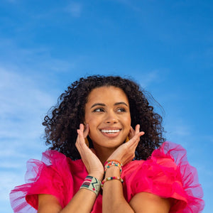 Join in the fun of our Gen-Z-inspired Kaleidoscope collection + let the joy of color take you back to simpler times. With an assortment of colorful sequins, making a bold statement has never been so effortlessly cool. Mix + match, layer + stack - this attention-grabbing collection is perfect for creating a look that is uniquely you. Pink, gold, black, mint + more - this rainbow stretch bracelet is a great way to add a pop of positivity to any outfit.