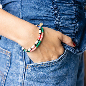 Infuse your wrist with a burst of energy using our Grace Two-Color Block Sequin Stretch Bracelet in Pink and Kelly Green from the Rio collection. The lively combination of colors and shimmering sequins adds a playful vibe to your ensemble. Grace is the ideal accessory for those who love to mix and match colors with a touch of sparkle.