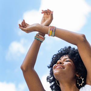 Mix + match, layer + stack with our Grace Gold Stripe Stretch bracelets! These sequin beauties are handmade with love + pops of shiny gold for an effortlessly cool vibe.
